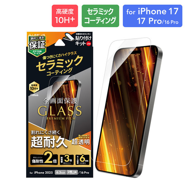 iPhone 17/iPhone 17 Pro/iPhone 16 Pro ガラスフィルム セラミックコーティング 超透明 指紋防止 耐衝撃(直送品)