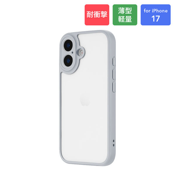 iPhone 17 耐衝撃ハイブリッドケース ライトグレー ストラップホール付(直送品)