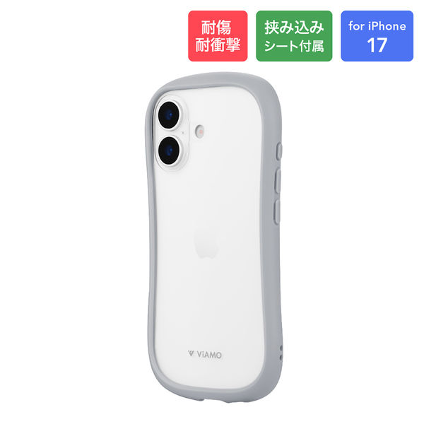 iPhone 17 耐傷・耐衝撃ハイブリッドケース ライトグレー 挟み込みシート付 ストラップホール付(直送品)