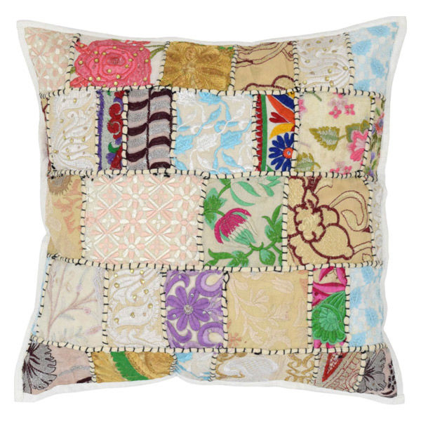 | 商品の特徴 | インドの古布をふんだんに使用した豪華なクッションカバーです。 伝統衣装の希少なヴィンテージ布をひとつひとつ手でつなぎ合わせました。 クッションの一般的なサイズ「45cm×45cm」に対応しています。 | ||