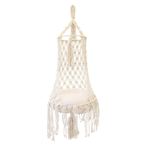 商品の特徴 マクラメ編みで作られた美しいキャットハンギングベッドです。 植物を飾るなどインテリアのアクセントとしてもお使いいただけます。 BOHOスタイル、ナチュラル、エスニックなど色々なスタイルに合わせてお楽しみいただけます。 丁寧に手で編み込まれおり、ナチュラルさや温かみを感じられます。