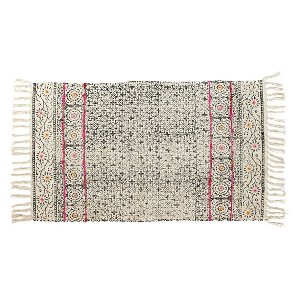 | 商品の特徴 | インドの職人さんがひとつひとつ手作業によって作られている玄関マットです。 職人さんの手仕事ゆえの特徴を商品の一つの味わいとしてお楽しみください。 本体は綿100%なので柔らかく、さらっとした肌触りです。 両サイドにはフリンジが付いています。 | ||
