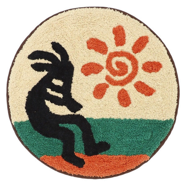 | 商品の特徴 | ネイティブアメリカンの豊穣の神ココペリをデザインしたマットです。 ラウンド型なので玄関からベッドサイドなど様々なシーンで活躍します。 インテリアのアクセントにも最適です。 | ||