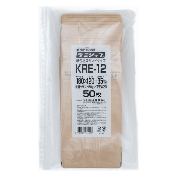 【チャック袋】生産日本社 ラミジップ(R) クラフト・スタンドタイプ チャック下180×横120+底35mm 1セット(1袋(50枚入)×10)
