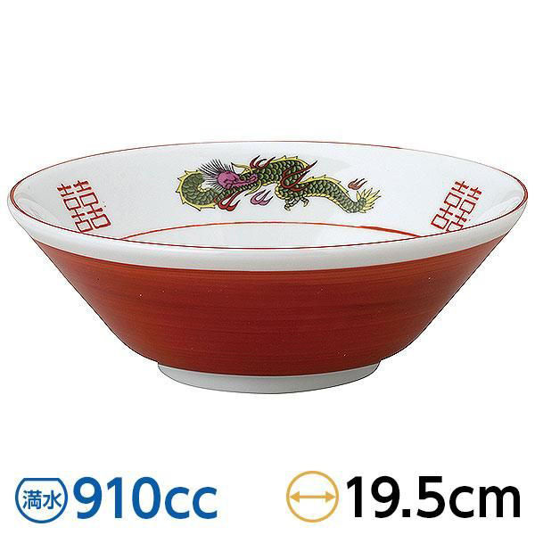 金正陶器 三つ龍ラーメン丼 赤巻切立20cm丼 三つ龍 63-11-224-20 1セット(3個)(直送品)
