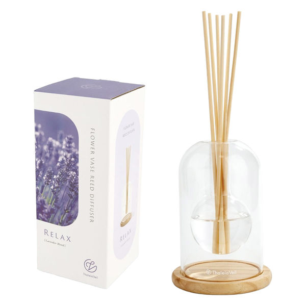 | 商品の特徴 | 香りで日常のストレスや緊張緩和目的としたリードディフューザー。フラスコ型のガラスベースが浮遊しているようなダブルレイヤーガラスを採用した他にはないデザイン。天然木のウッドトレイでより上品な印象に。シンプルで自然な香りなので、リビング、玄関、寝室と場所を選ばずお使いいただけます。国内工場で製造されているので品質も安全。使用後はフラワーベースとして飾っていただけます。ラベンダーブレンド:やわらかいフローラルの香りが特徴。甘すぎない、爽やかなラベンダーの香りで心も体もリラックス。#人気 ギフト プレゼント 人気 | ||