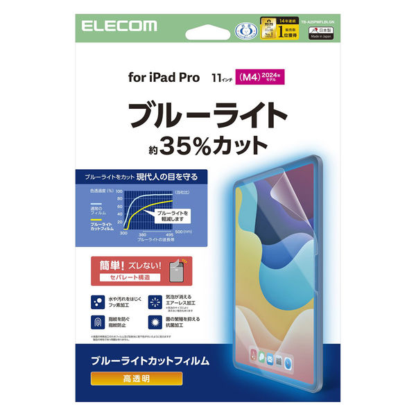 エレコム 11インチ iPad Pro(M4) フィルム 高透明 ブルーライトカット 抗菌 TB-A25PMFLBLGN 1個