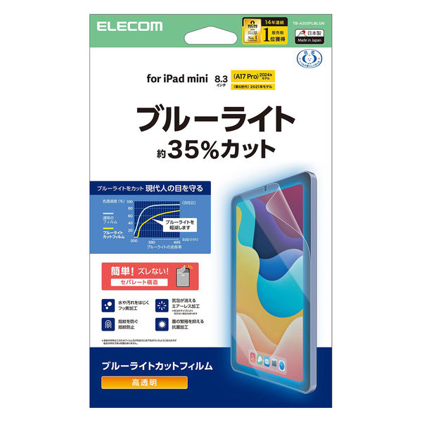 エレコム iPad mini (A17 Pro) フィルム 高透明 ブルーライトカット TB-A25SFLBLGN 1個