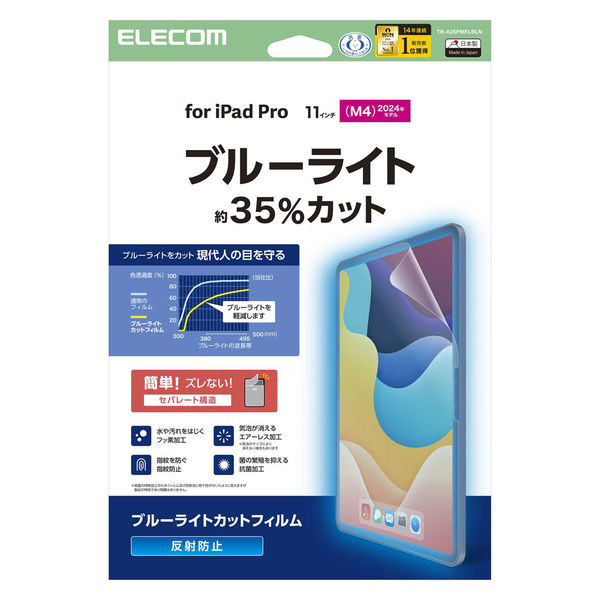 エレコム 11インチ iPad Pro(M4) フィルム ブルーライトカット 抗菌 TB-A25PMFLBLN 1個