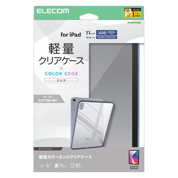 エレコム iPad ケース 11インチ(A16) 耐衝撃 背面クリア ブルーグレー TB-A25RTSLOBG 1個