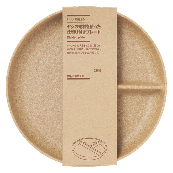 無印良品 レンジで使える ヤシの端材を使った 仕切り付きプレート 2枚組 良品計画