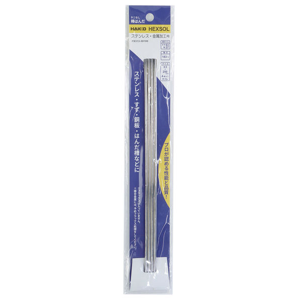 | 商品の特徴 | ステンレス・金属加工用。ステンレス、すず、銅板、はんだ槽などに。溶けやすく流れやすい共晶タイプ | ||