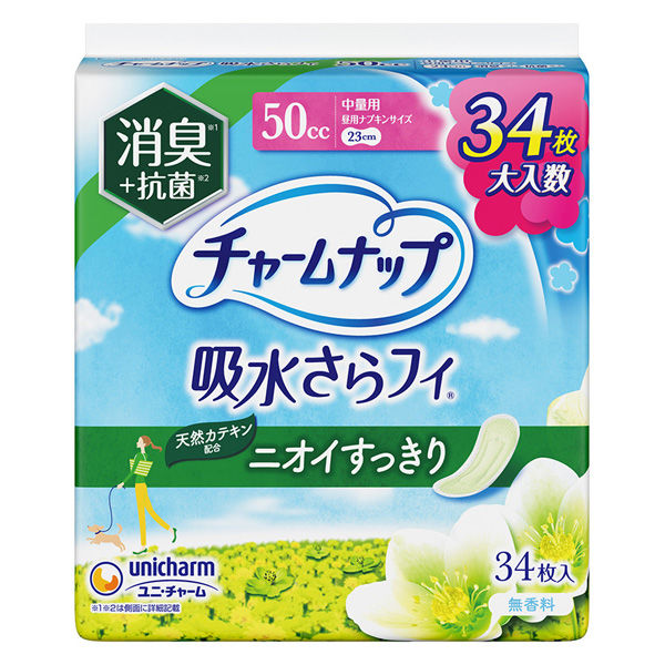 大容量 吸水ライナー チャームナップ 吸水さらフィ 中量用 消臭 50cc 羽なし 23cm 1パック(34枚) 尿もれ 軽失禁 ユニ・チャーム