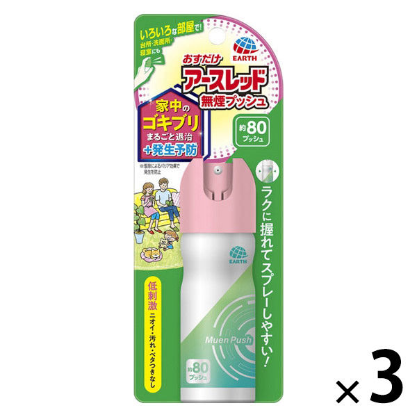 ゴキブリ 駆除剤 スプレー おすだけアースレッド 無煙プッシュ 80プッシュ 1セット(1個×3) ゴキブリ対策 退治 殺虫剤 アース製薬