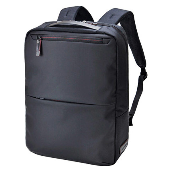 | 商品の特徴 | マットブラックで落ち着いたボディに赤いアクセントで、キチンと感のあるかっこいい大人のリュックです。異素材の組み合わせが堅苦しくなりがちなビジネスバッグにさりげなくカジュアル感を与えるデザイン。背面にはキャリーケースのバーに通す機能を備え、軽快な持ち運びをサポートします。B4ファイル収納や13インチパソコン収納も可能で、キャリーオン機能もあり、機能性も充実したバッグです。 | ||