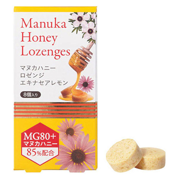 - マヌカハチミツ、マルトデキストリン、レモン濃縮果汁、エキナセアエキス、ステアリン酸カルシウム