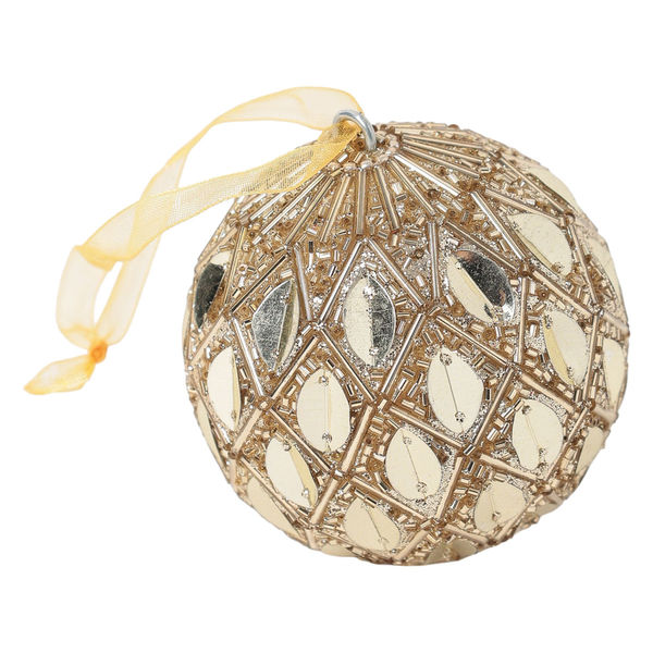 【在庫処分】単品でも存在感のある大きめサイズのボウルオーナメント。丸いウッドに小さいビーズをひとつずつ手作業で貼り付けて作った雰囲気のあるアイテム。