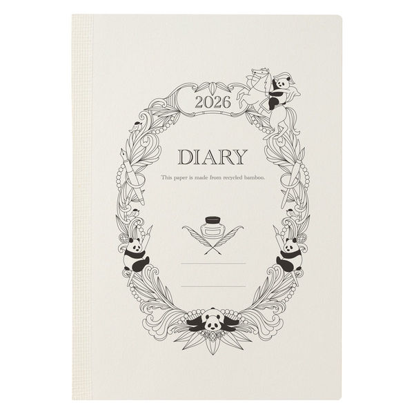 商品の特徴 国産竹100%から作られた竹紙100ナチュラルを使用したダイアリーです。使用されている竹紙は100g/m2の厚みのあるしっかりした紙質なので、書き消しができるボールペンにも最適。黒だけでなく白のインクも映える紙色。スケジュール欄は日付の数字を塗りつぶしたり、好みのインクで仕上げられるデザインです。表紙や本文中にはかわいいパンダのイラスト入り。【2026年カレンダー・スケジュール帳】、【26calendarbungu】