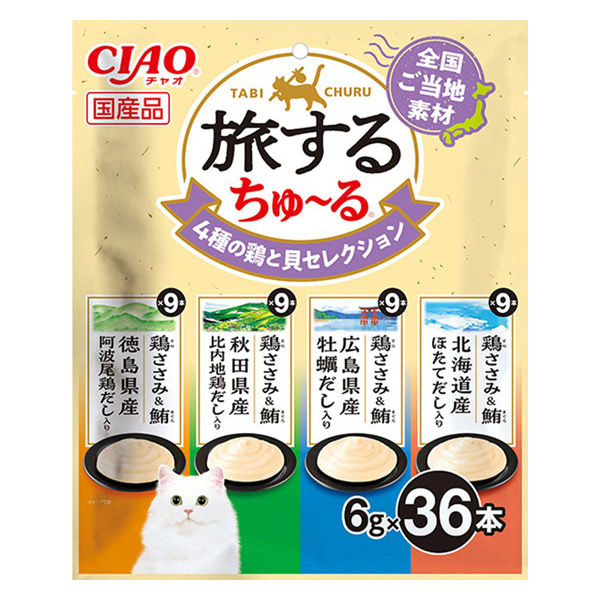 いなば CIAO チャオ 旅するちゅーる 4種の鶏と貝セレクション 国産 (6g×36本)1袋 ちゅ~る キャットフード 猫用 おやつ