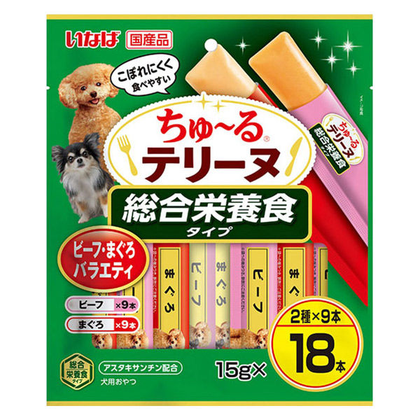 (バラエティパック)いなば ちゅーる テリーヌ 総合栄養食タイプ ビーフ・まぐろ 国産 (15g×18本)1袋 ちゅ~る ドッグフード 犬用 おやつ