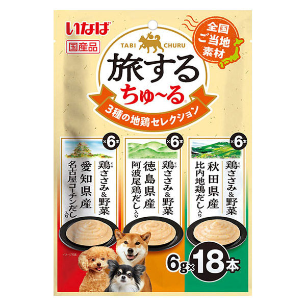 いなば 旅するちゅーる 3種の地鶏セレクション 国産 (6g×18本)1袋 ちゅ~る ドッグフード 犬用 おやつ