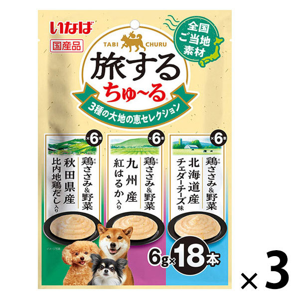 いなば 旅するちゅーる 3種の大地の恵セレクション 国産 (6g×18本)3袋 ちゅ~る ドッグフード 犬用 おやつ