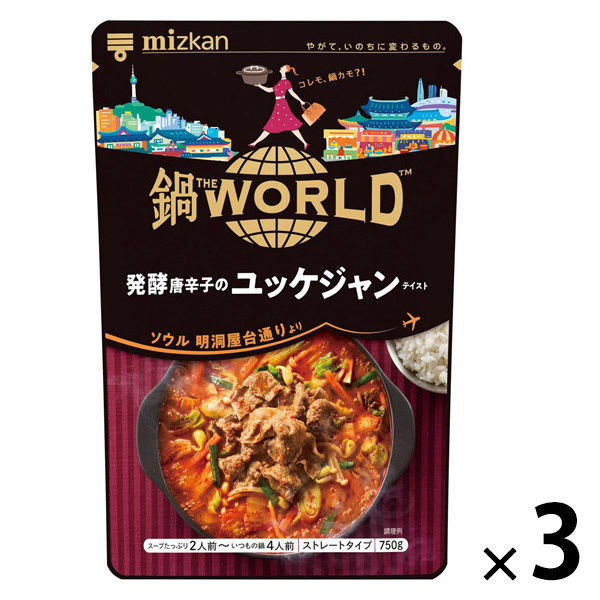 鍋THE WORLD 発酵唐辛子のユッケジャンテイスト750g 3個 ミツカン 鍋つゆ 鍋スープ