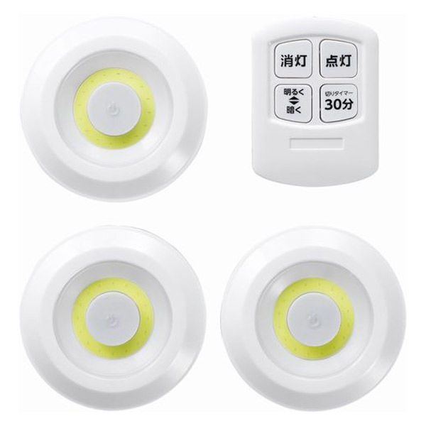 【アウトレット】【Goエシカル】訳あり ヤザワコーポレーション リモコン付LEDプッシュライト3個入 NBSWRD65WHE 付属ネジなし