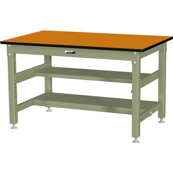 【車上渡し】山金工業 ワークテーブル 軽量作業台 耐荷重300kg 固定式 中間棚付 ポリエステル天板 SWP-1290S2-MI 1台(直送品)