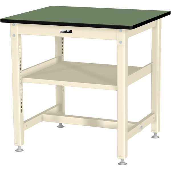 【車上渡し】山金工業 800 作業台 耐荷重800kg 全面中間棚板付 塩ビ天板 グリーン×アイボリー SVRH-975S2-GI 1台(直送品)