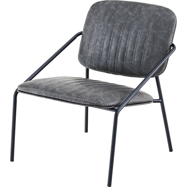スチールフレームとレザーの組み合わせが、インダストリアルやヴィンテージなど様々なテイストに合うシンプルなチェア。広めの座面でゆったりと座れます。