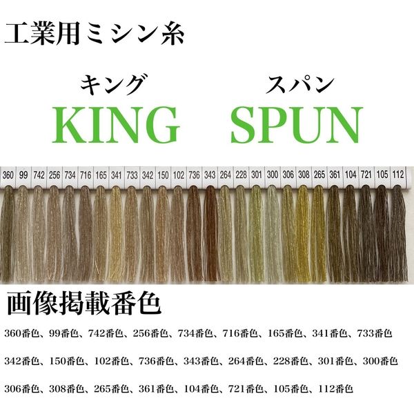 | 商品の特徴 | ポリエステル100%の工業用ミシン糸です。本商品は、ポリエステル素材の中でもミシン糸用として特別に紡糸された、高強力、低伸度、低収縮タイプの原糸を用い、さらに高度な加工技術によって、一段と(可縫製)を高め、使用範囲を広げた、スーパークォリティーのミシン糸です。 | ||