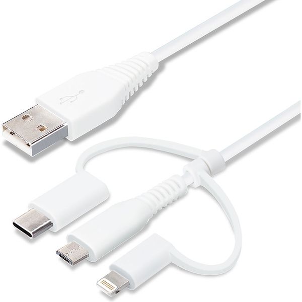 PGA 変換コネクタ付き 3in1 USBケーブル(Lightning&Type-C&micro USB) 1m ホワイト(直送品)