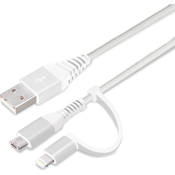 PGA 変換コネクタ付き 2in1 USBタフケーブル(Lightning&micro USB) 1m ホワイト&シルバー(直送品)