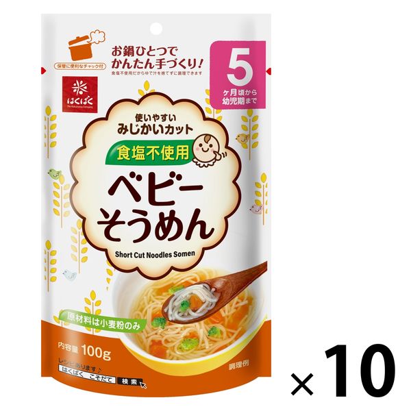 | 商品の特徴 | 「離乳食を手作りしたいけど、作る手間、片付ける手間は減らした」「食の経験のために麺類を食べさせたいけど、塩分が気になる」、そんなお母さんの気持ちに応える、食塩不使用・長さ2.5cmのそうめんです。チャック付スタンドパック入りだから、保管にも便利です。 | ||