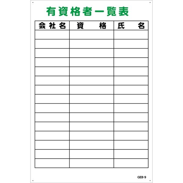 本商品:グリーンクロス マンガ標識 GEB-9 有資格者一覧表 1145170809 1枚(直送品) |