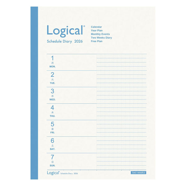 | 商品の特徴 | 【在庫処分】・スケジュール管理しやすい月曜始まりの週間ダイアリー。・見開き2週間なので週の予定を立てながら次の週を同時に確認できます。・ページの右側がロジカル罫なので自由にレイアウトできます。・年間の予定を確認しやすいイベントページつき【2026年カレンダー・スケジュール帳】、【26calendarbungu】 | ||
