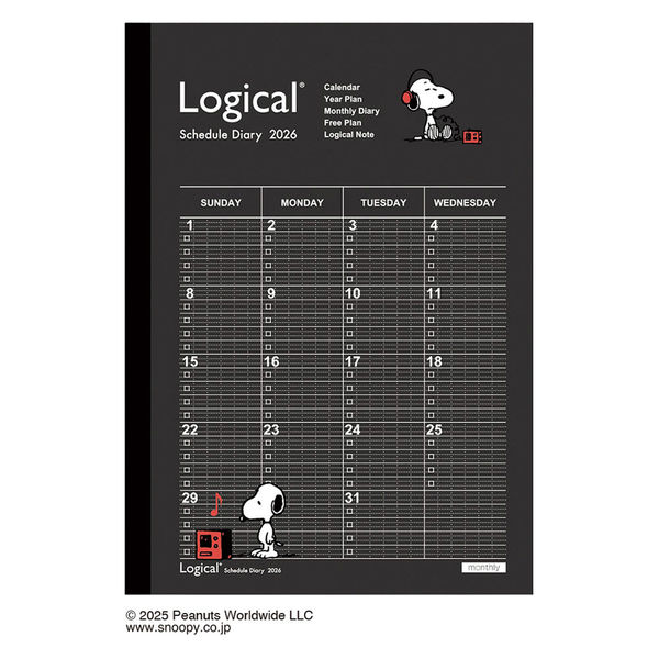 【在庫処分】ロジカルノートタイプのスケジュール帳! スヌーピーの表紙デザイン。【2026年カレンダー・スケジュール帳】、【26calendarbungu】