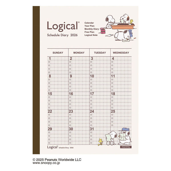 【在庫処分】ロジカルノートタイプのスケジュール帳! スヌーピーの表紙デザイン。【2026年カレンダー・スケジュール帳】、【26calendarbungu】