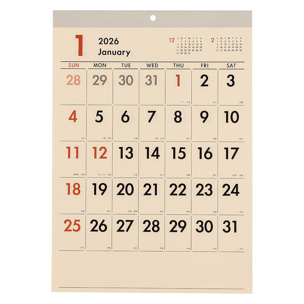 【在庫処分】目にやさしいクリーム地のカレンダー【2026年カレンダー・スケジュール帳】、【26calendarbungu】