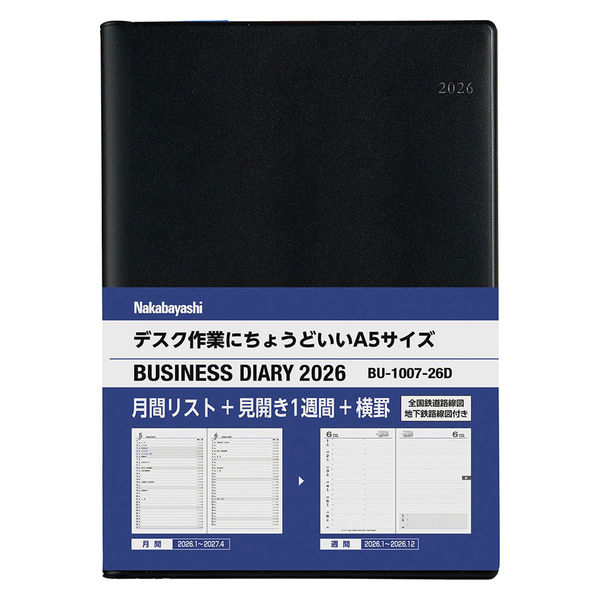 本商品:【アウトレット】【2026年度版手帳】ナカバヤシ ビジネスダイアリー A5デスク BUー1007ー26D 1冊