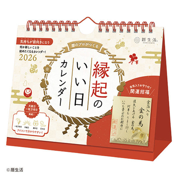 本商品:【アウトレット】【2026年度版カレンダー】新日本カレンダー 縁起のいい日 卓上(お守り付) 8950 1冊 |