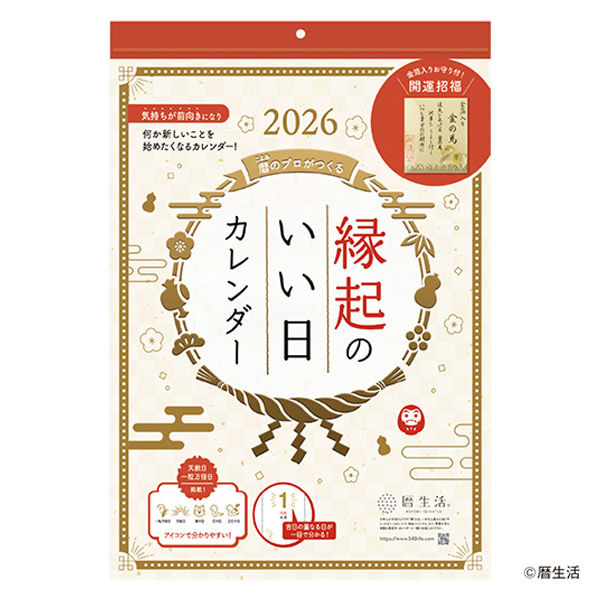 本商品:【アウトレット】【2026年度版カレンダー】新日本カレンダー 縁起のいい日 壁掛け(お守り付) 8940 1冊 |
