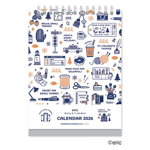【在庫処分】消しゴムはんこ作家ericさんの、小さなもので溢れた世界のカレンダー 卓上タイプ【2026年カレンダー・スケジュール帳】、【26calendarbungu】