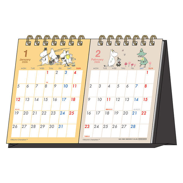 | 商品の特徴 | 【在庫処分】毎月異なるイラストが楽しめる、キャラクターデザインの2026年版カレンダーです!卓上タイプ。2か月分を並べて置けるので、先の予定まで見通せる便利さが人気のアイテムです。実用性の高い祝日・イベント表記入り。2026年12月までの月間カレンダー12ページを収録。シンプルなデザインが使いやすい、カラフルで楽しい「ムーミン」デザインです。【2026年カレンダー・スケジュール帳】、【26calendarbungu】 | ||