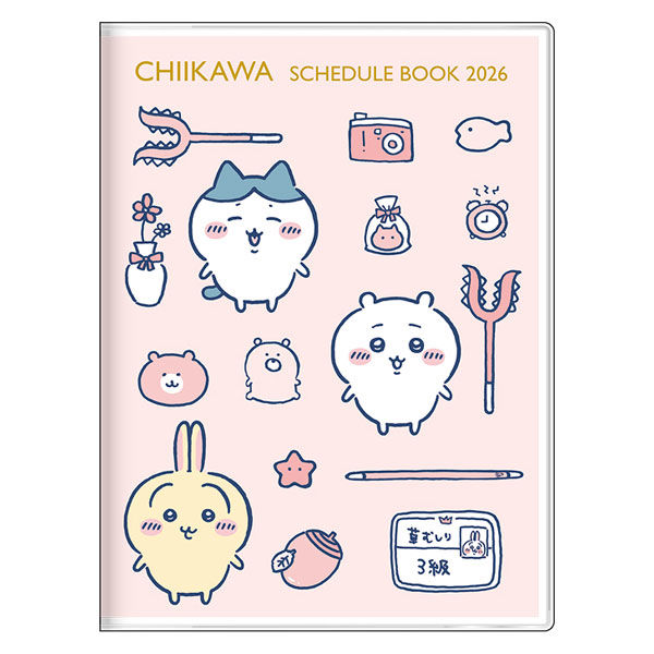 | 商品の特徴 | 随所に描かれたイラストが楽しい2026年版の手帳。持ち運びやすいサイズ感で、プライベートの予定管理やサブ手帳にもおすすめな「月間A6」タイプ。メモページもたっぷりで書き込みしやすく、ペンホルダー、六曜表記、路線図収録など機能も充実。スケジュールページはビジネスでもプライベートでも使いやすいシンプルなデザイン。メモページはカラーが可愛い無地仕様。ゆるくて可愛らしいキャラクターとちょっぴりダークな世界観が魅力の「ちいかわ みんな」柄です。【2026年カレンダー・スケジュール帳】【26calendarbungu】 | ||