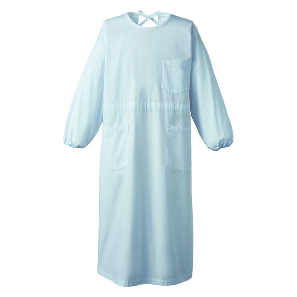 | 商品の特徴 | 簡単に着脱できて、しっかりカバーできる長袖タイプの予防衣です。袖口にはゴムが入っており、使い勝手もいい仕様です。前ウエスト部分にはウエストサイズ調整可能な紐が入っております。ポケットは左胸に1つと両脇に2つ付きます。 | ||