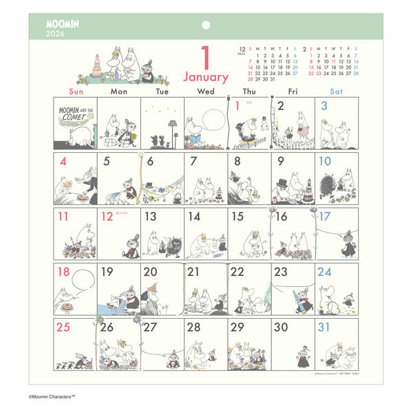 【在庫処分】MOOMINのコミックアートが楽しめるカレンダー。【2026年カレンダー・スケジュール帳】、【26calendarbungu】