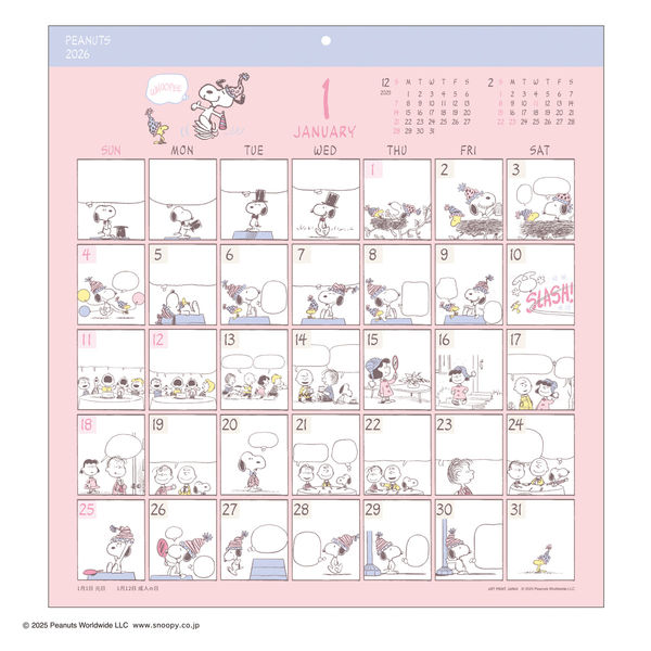 【在庫処分】PEANUTSのコミックアートが楽しめるカレンダー。【2026年カレンダー・スケジュール帳】、【26calendarbungu】