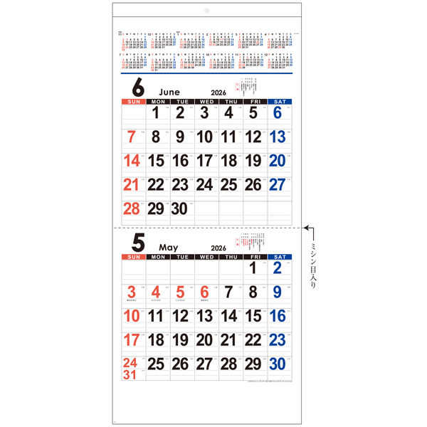 カレンダー範囲 2026年1月~12月 その他特徴 祝日名/年中行事/二十四節気/ミシン目入り